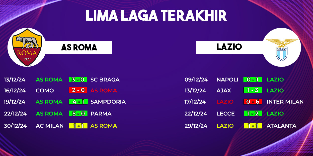 Kekuatan Lazio terletak pada lini depan yang tajam dan organisasi permainan yang solid. Dengan rekor yang lebih stabil, mereka datang ke Derby della Capitale dengan kepercayaan diri tinggi.