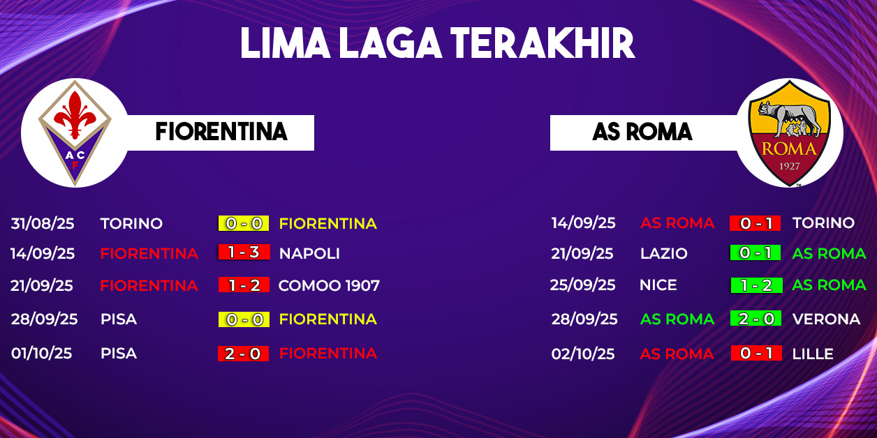 Laga Fiorentina vs AS Roma akan menjadi salah satu pertandingan menarik di pekan ke-6 Serie A 2025/2026. Fiorentina berjuang mencari kemenangan perdana, sementara Roma ingin menjaga momentum di papan atas. Dengan kualitas yang dimiliki, duel ini layak ditunggu karena kedua tim memiliki motivasi besar untuk meraih tiga poin.