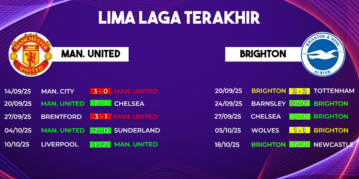 Dengan kondisi mental yang meningkat serta dukungan penuh dari publik Old Trafford, Manchester United berpotensi tampil dominan. Namun, Brighton yang dikenal disiplin dan efektif bisa mencuri peluang melalui skema serangan balik.