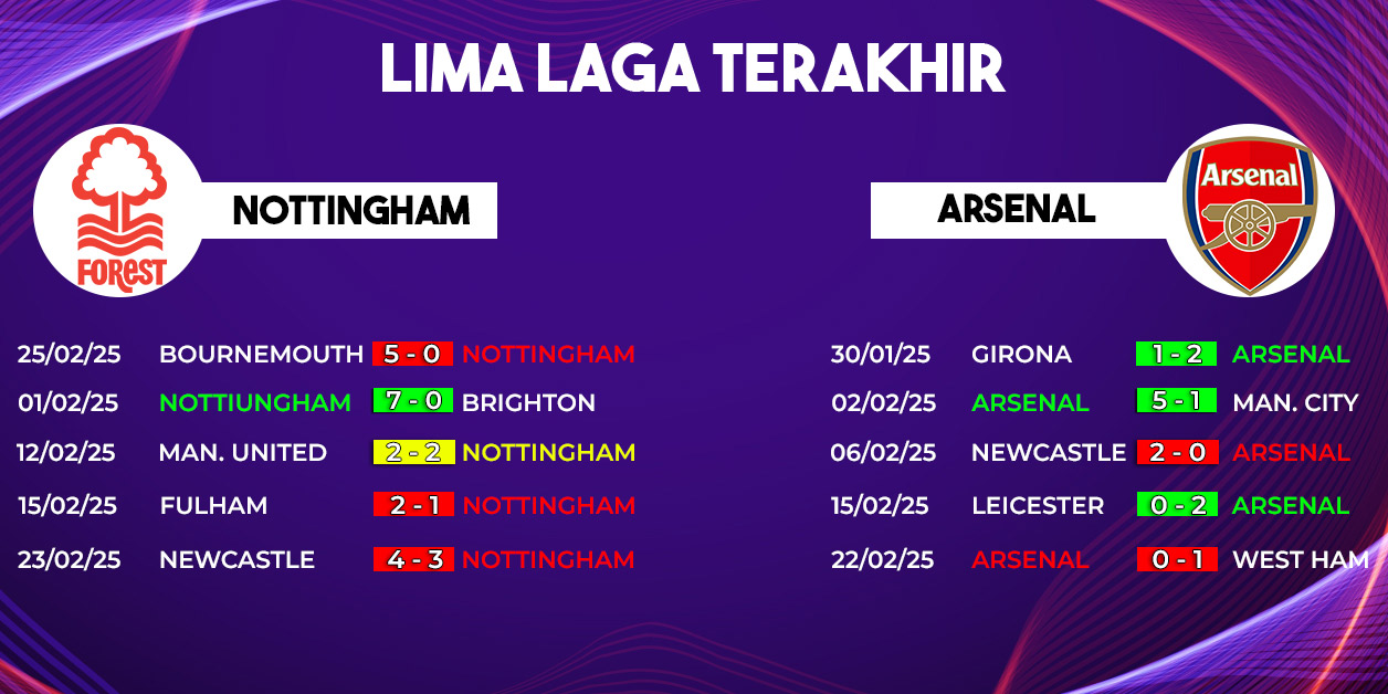 Mampukah Arsenal mengamankan tiga poin untuk terus menekan Liverpool di puncak klasemen? Ataukah Forest akan mempertahankan rekor tak terkalahkan mereka di kandang? Duel seru ini patut dinantikan!